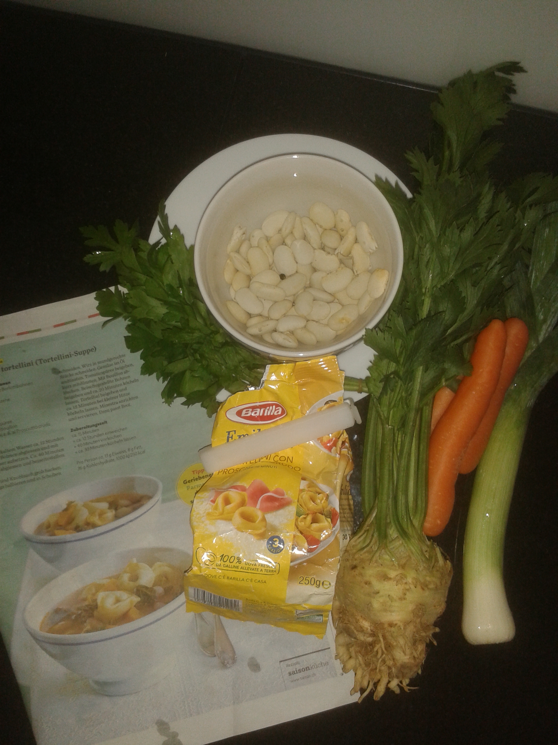 Minestrone mit Tortelli. Was Suppe zum Abendessen? Jawohl. Salz und Flüssiges ist jetzt angesagt. Schwitzen tun wir ja so oder so schon.