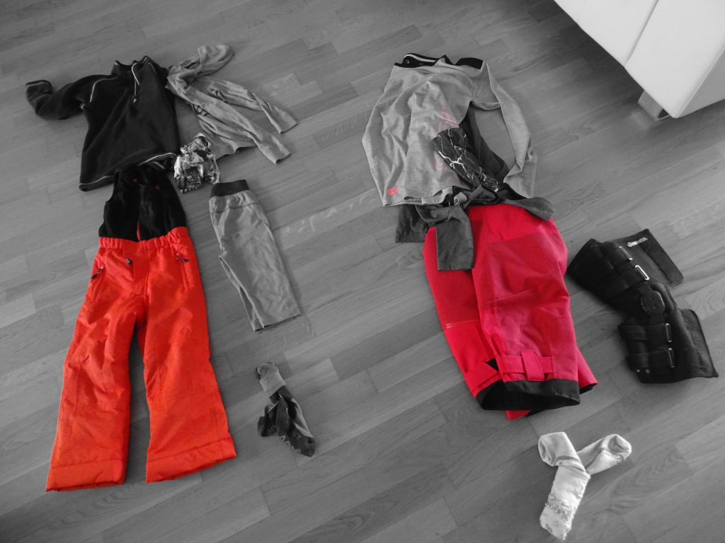 Zum Mittagessen gibt es Fast Food. Knöpfli aus dem TK und Birnen aus dem Weckglas. Die Kleider liegen bereit zum reinhüpfen und schon geht es los.