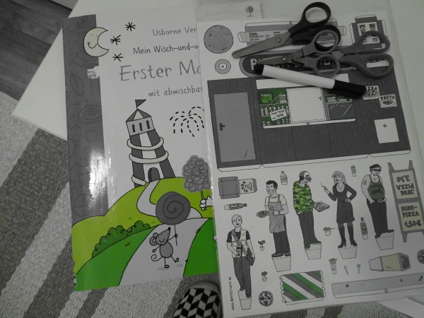 Heute Abend gehen wir chic essen. Für die Kids gibts was zum malen und ausschneiden. Kennt ihr diese Bastelbögen noch von früher. Ich habe Sie geliebt. Hier ist die Version Pizza Bude.
