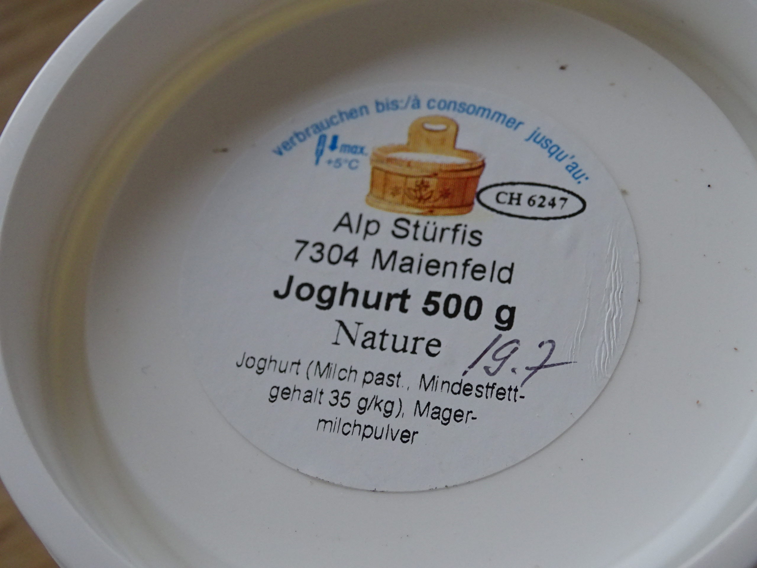 Mein geliebtes Alp Joghuhrt. Das gibt es nur im Sommer eine kurze Zeit. Das wir auf der Alp – da waren wir gestern – zubreitet und bei uns im Dorfladen verkauft.