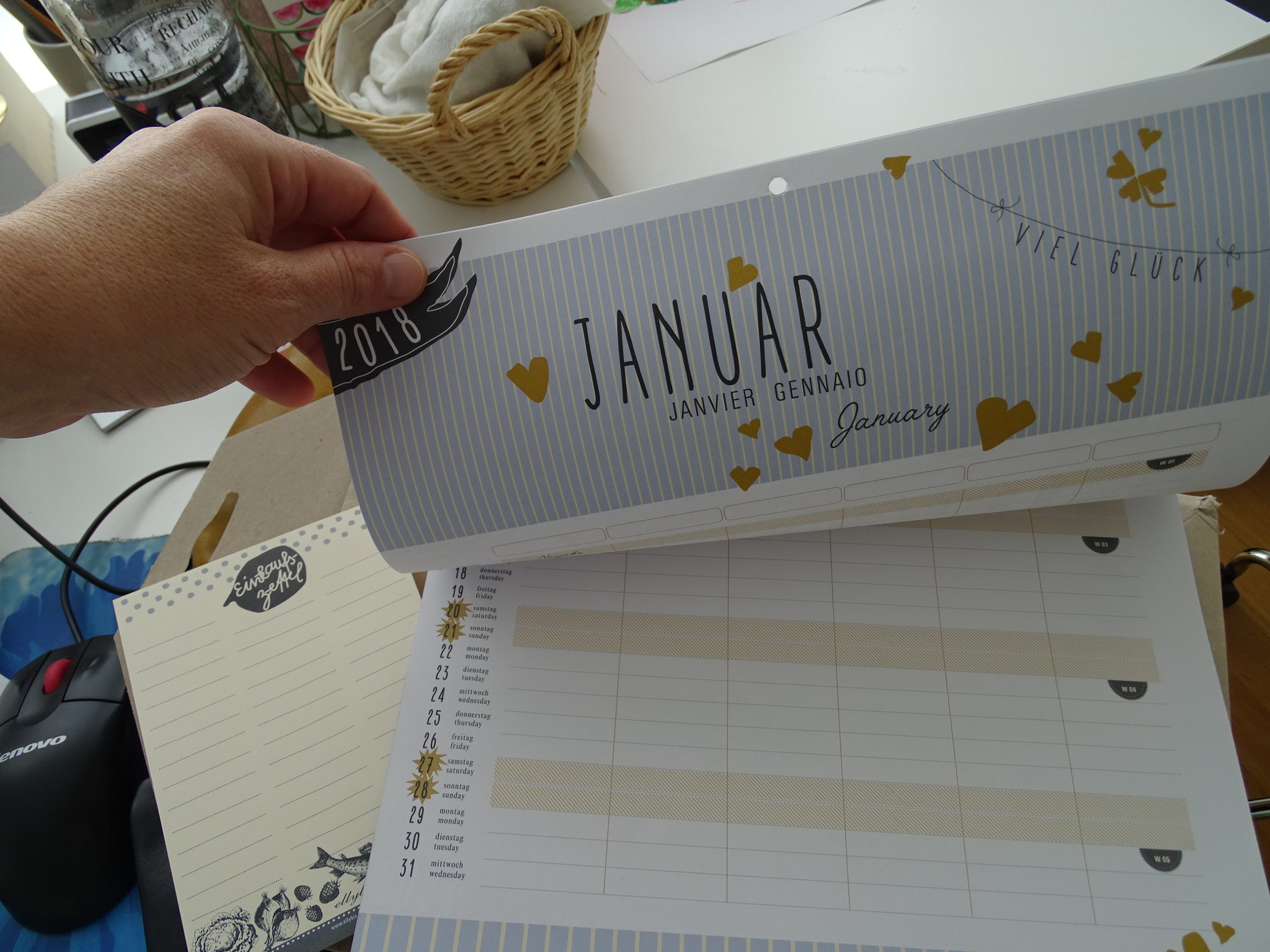 Mit einer kurzen Stippvisite im Lädeli, düse ich retour. Büroarbeit gäbe es en Masse. Nur rinnt mir die Zeit davon. Also. Das mit der vielen Zeit, wenn die Kids dann im Kindi sind, ist schon so. Aber ich hatte vorher schon zu wenig und das bisschen was jetzt obendrauf gekommen ist, reicht irgendwie nicht aus. Den die Pilatesstunde die lass ich mir nicht nehmen. Ich werde in den Herbstferien mal ein Resumé ziehen. Und mit dem wundervollen Familienplaner 2018 ein paar Korrekturen andenken. Der ist übrigens von Schaffhausen. Ellybis heisst der wundervolle Shop.