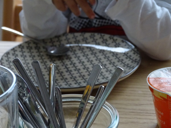 Wir setzten uns erstmal hin und essen in Ruhe.