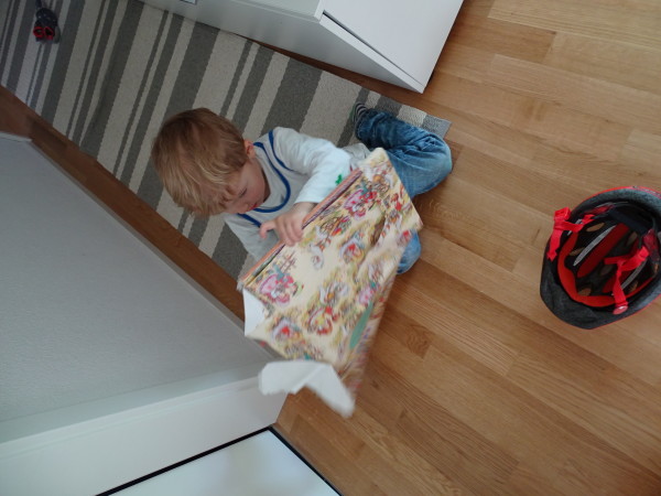 Der Helm ist schon mal auf. Die Freude auf die Spielgruppe ist jeweils riesig.