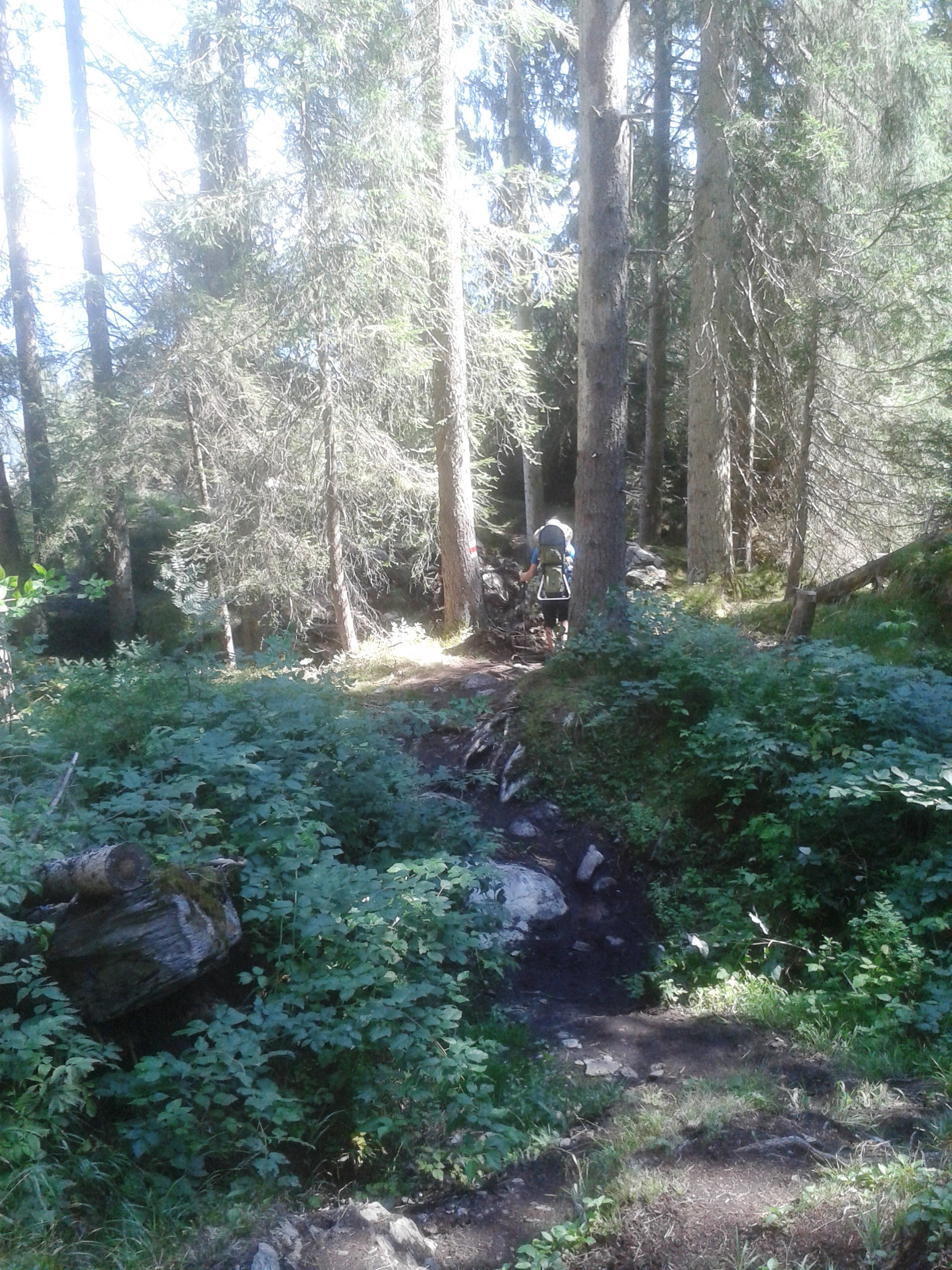 Wir marschieren los Richtung Flem. Steine in den Bergbach werfen. Mit dieser Aussicht stapft unser Drei-Käsehoch los. Ein Höhenweg, mit grandioser Aussicht, führt uns zum rauschenden Gebirgsbach.