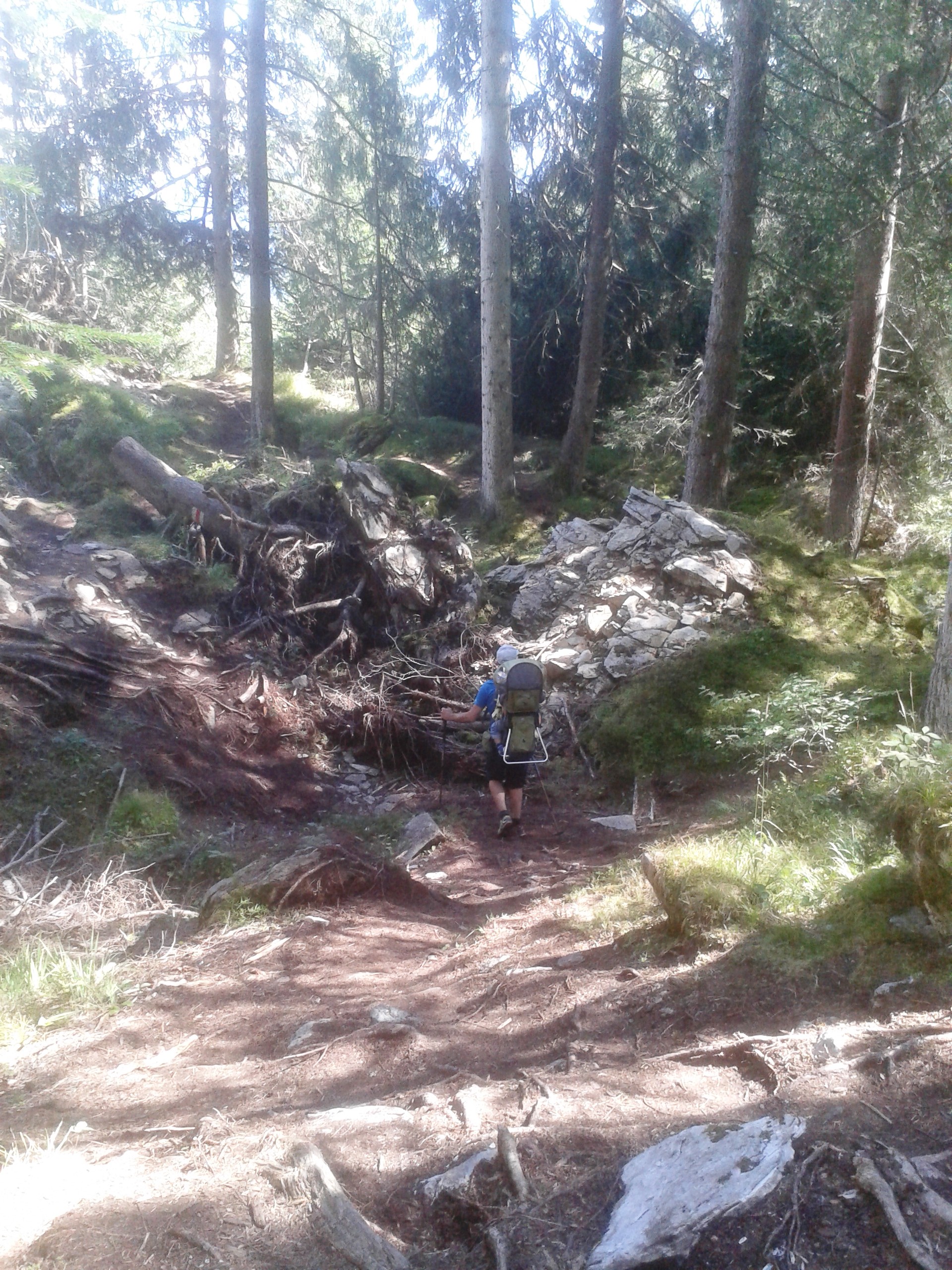 Kurz vor dem Ziel, der Talstation in Flims wechselt die Szenerie. Durch eine märchenhafte, Feen-, Elfen- + Gnomen-angehauchte Landschaft führt uns der super beschilderte Wanderweg. Unter dickem Moos liegen Sie. Die riesigen Steinbrocken des Flimser Bergsturz. Der Weg führt auf und ab und schlängelt sich durch die mystische Natur. Der Boden federt beinahe, so dick moosbewachsenen ist hier alles.