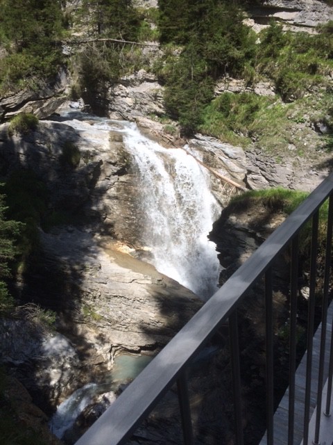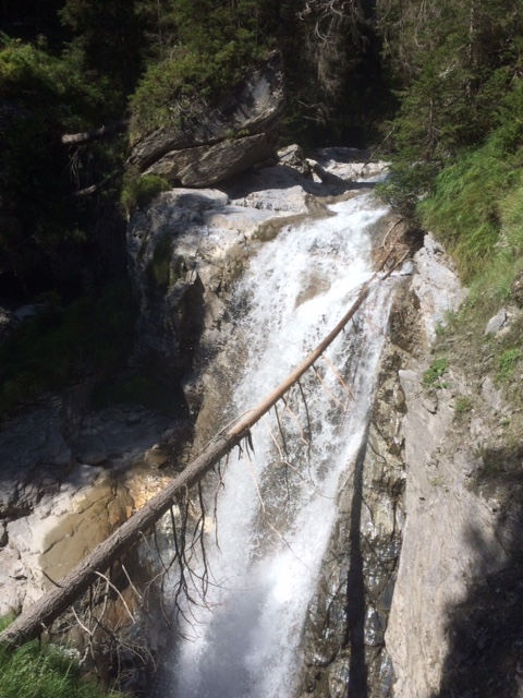 Der Bach zeigt sich in vielen faszinierenden Facetten. Mal stürzt er sich als Wasserfall den Hang runter, dann kommt er breit wie eine Riesenrutsche daher und ein andermal zwängt er sich durch ganz abgeschliefenen Felsen und dreht sich gar um die eigene Achse. Zwischendrin gibt es Kiesbänke die toll zum spielen sind und schon ums nächste Eck ist er wieder tief tief unten in einer Schlucht.