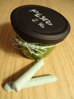Meine Deckel habe ich mit schwarzer Wandtafel Farbe eingefärbt. So ist die Beschriftung leicht gemacht und sieht immer toll aus.