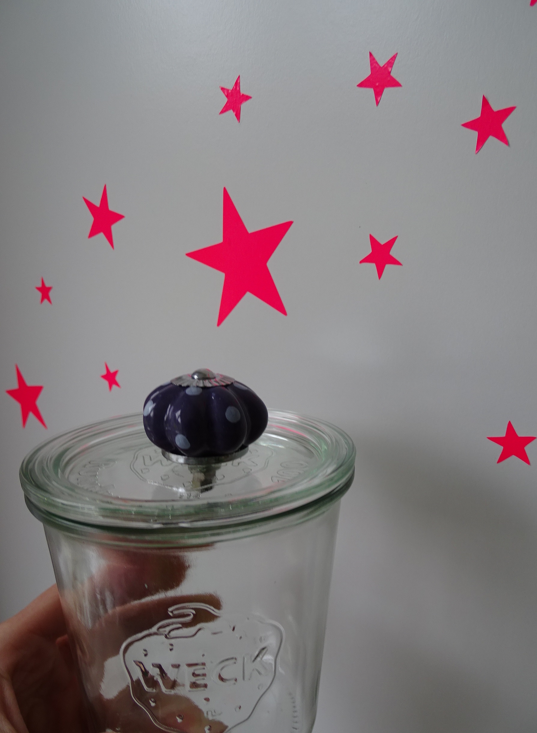 Fertig ist dein zauberhaftes Glas. Darin lassen sich Süssigkeiten aufbewahren, Müsli Mischungen, Wattestäbchen, Büroklammern oder was du grad schön verräumt haben möchtest.