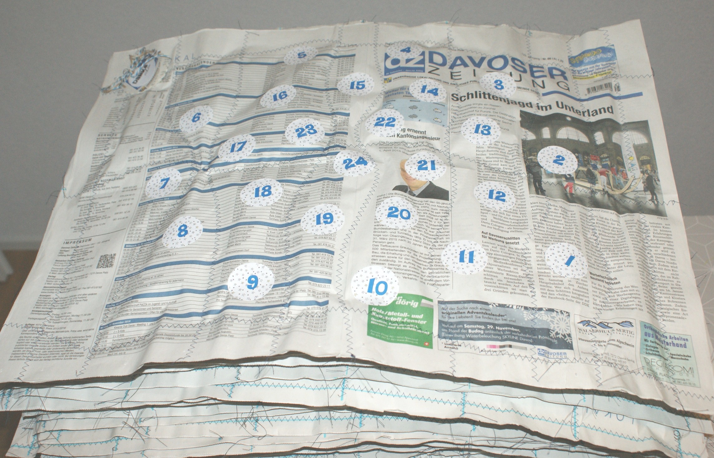 Den „Plumpser“ meines Steins der mir vom Herzen gefallen ist. 140 Adventskalender. Sie sind alle, jeder einzelne, von mir genäht. Bestückt mit wunderbaren Guetzli aus der Schweizer Traditionsbäckerei Hug.