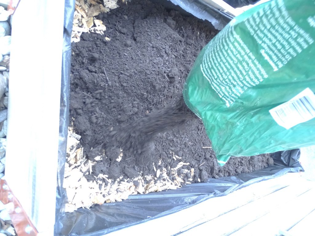 Tonkugeln würden auch gehen. Dann folgt ein Sack Komposterde.