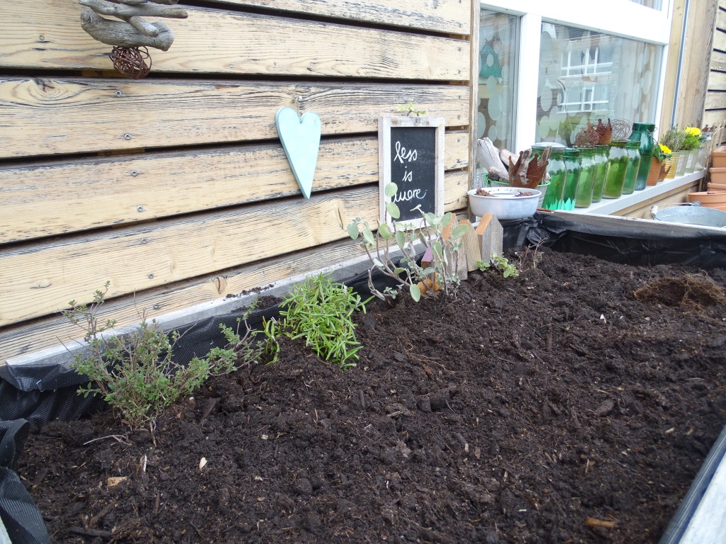 Ein weiterer Sack normale Gartenerde und quasi als Topping noch einen Sack mit Aussaaterde. Kräuter die in Töpfen waren sind eingezogen und ein paar von mir gezogene Blumenzwiebeln. Bis dann die Pro Spezia Rara Bohnen in die Erde dürfen, warten wir noch einen Moment. So Anfang März wagen wir uns dann daran. Dank der Hauswand und der geschützten Lage wird es hier schnell warm. Und was wir sonst noch auf der kleinen Fläche ziehen, entscheidet der kleine Gärtnermeister dann selber.