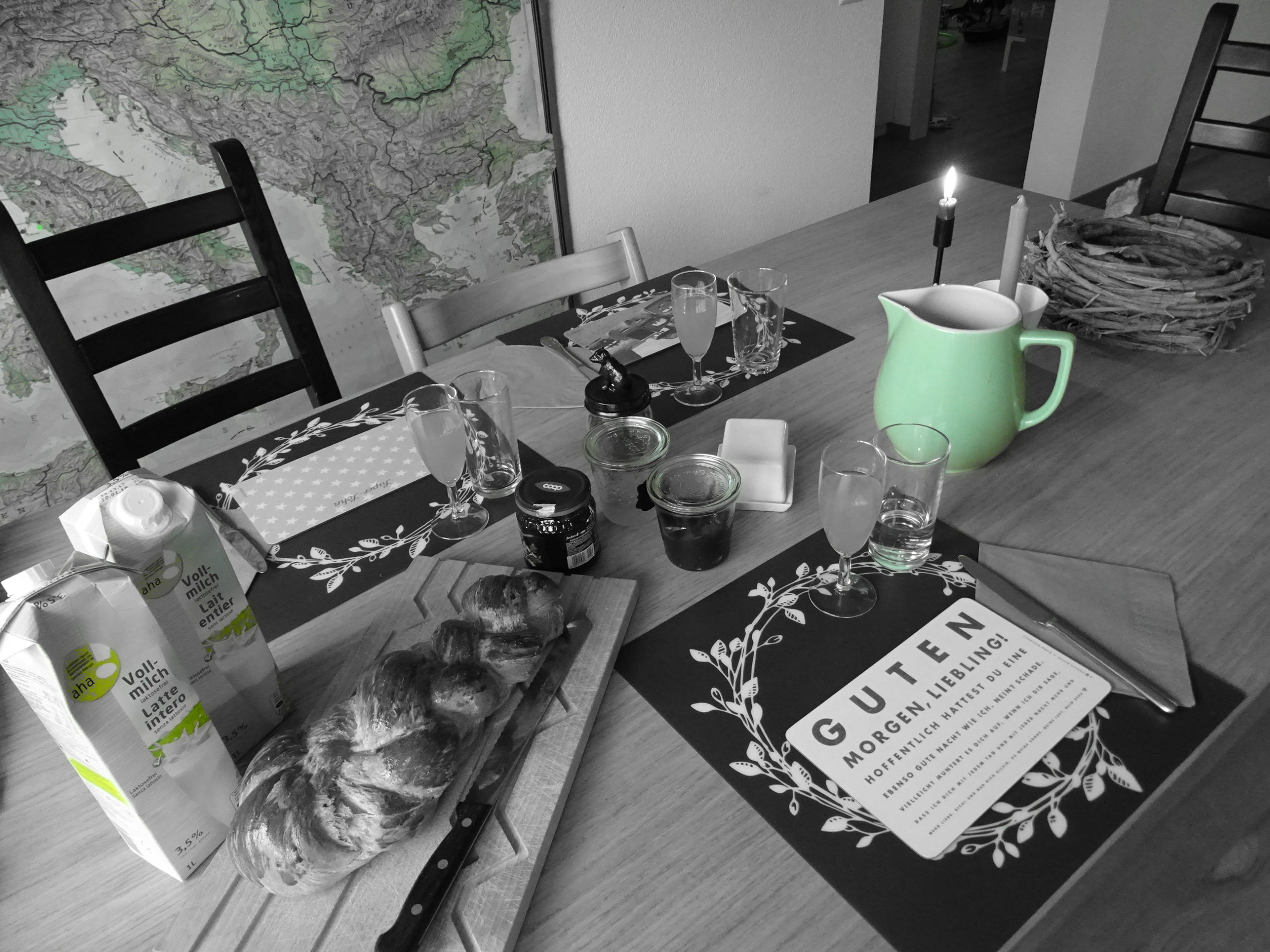 Ausgiebig frühstücken. Mit dem klassischen Sonntagszopf. Meiner Tasse Tee. Meiner Tasse Schüssler. Coffeehouse Musik.