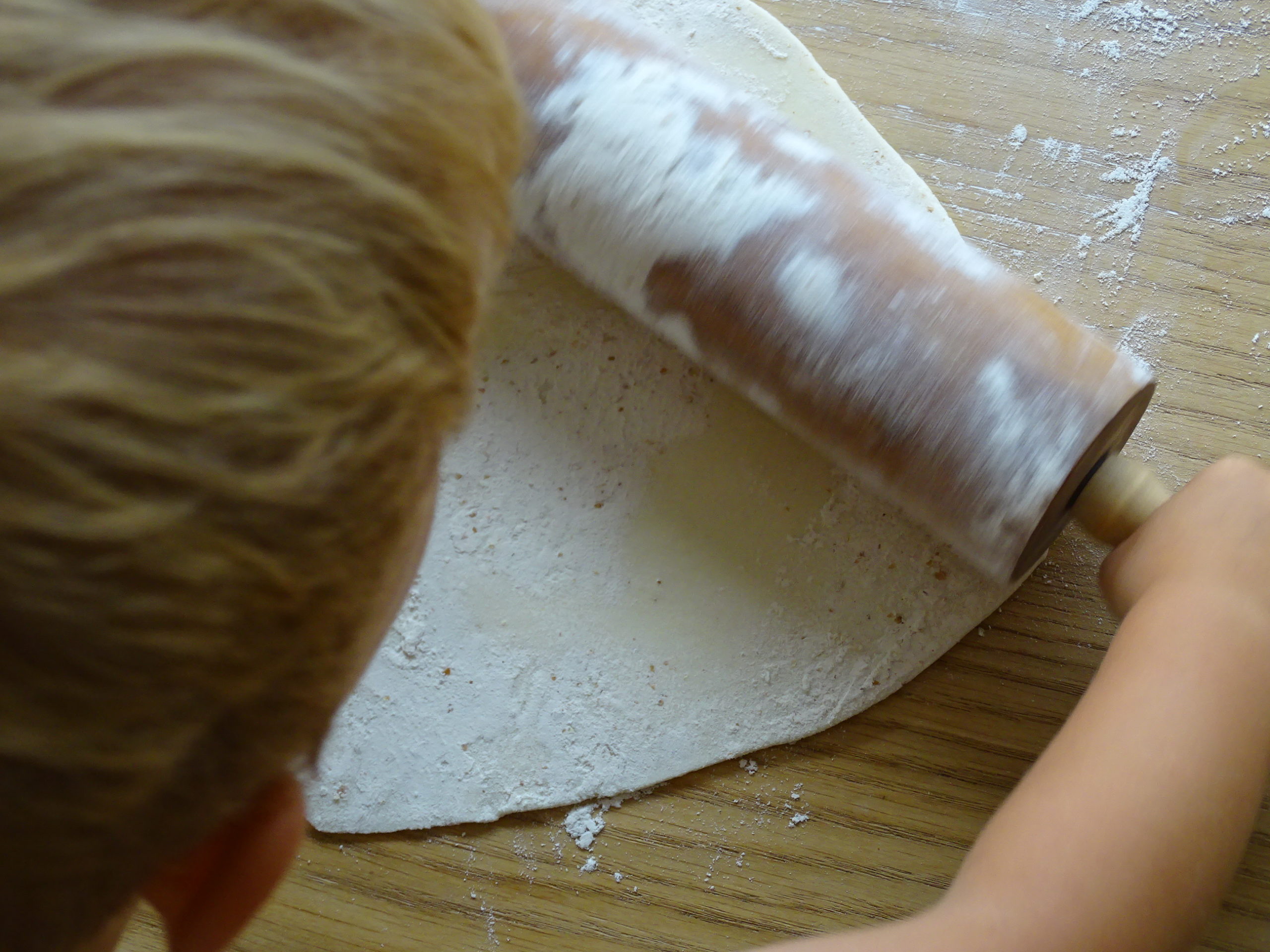 Mini-Me ist immer mit im Einsatz, Teig auswahlen.