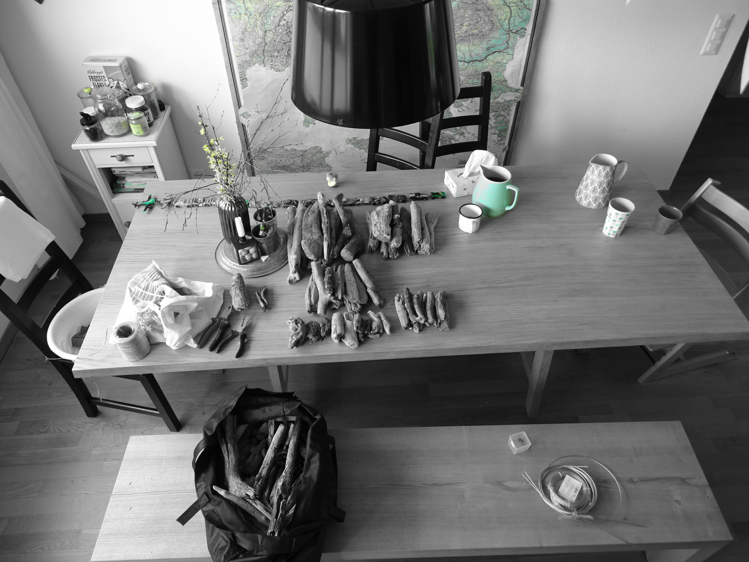 Wir sind beide erkältet und die Lust nach draussen zu gehen hält sich in Grenzen. Aber nebst dem Wäsche waschen (Hallo Montag), gibt es schon noch das eine oder andere zu tun. Zum Beispiel Schwemmholz verarbeiten. Und ein Besuch beim Bäcker. Sowie ein Abstecher in die Bibliothek.