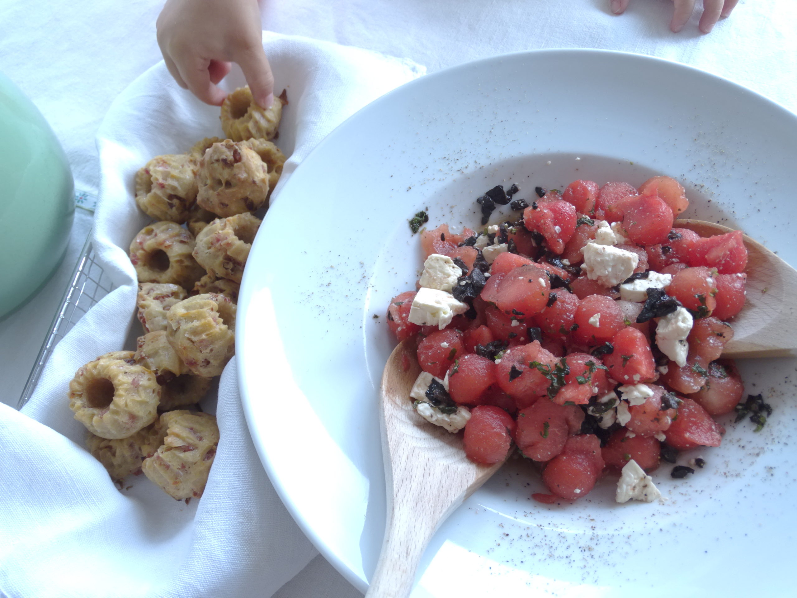 es gibt: MelonenSalat + pikante Guggelhöpfli