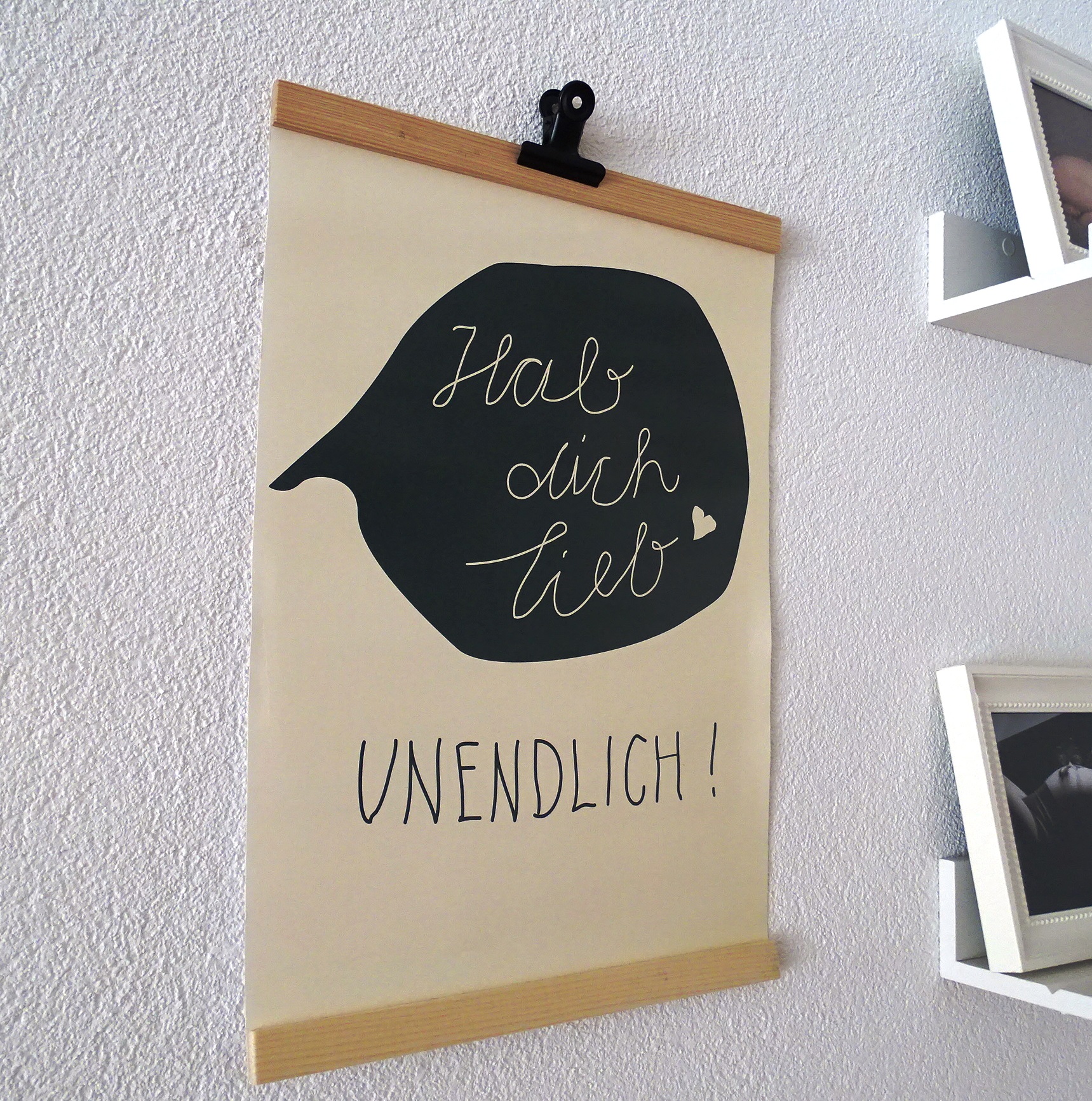 Du magst das mit der Jutte nicht – dann kannst du wie ich, das Poster mit einem Paperclip festmachen. Die gibt es übrigens bei mir im AtelierLaden in drei verschiedenen Ausführungen.