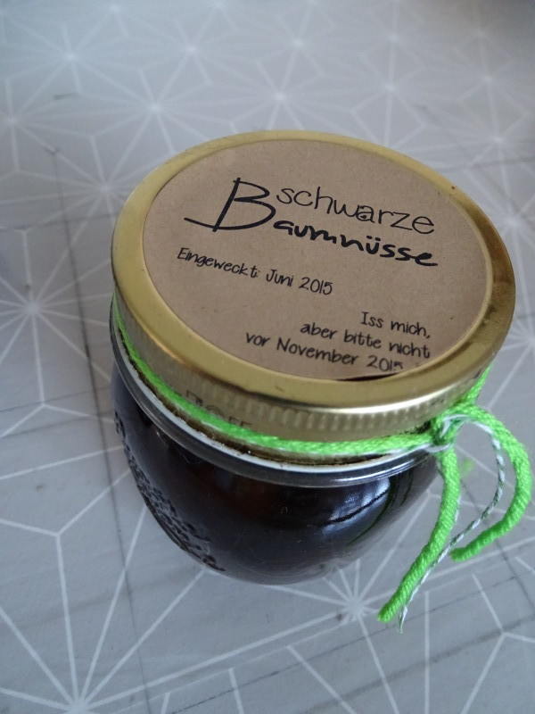 errinnert ihr euch? Am 24. Juni habe ich euch dieses Rezept für das Einmachen von schwarzen Nüssen verraten. Diese dürft ihr endlich öffnen.