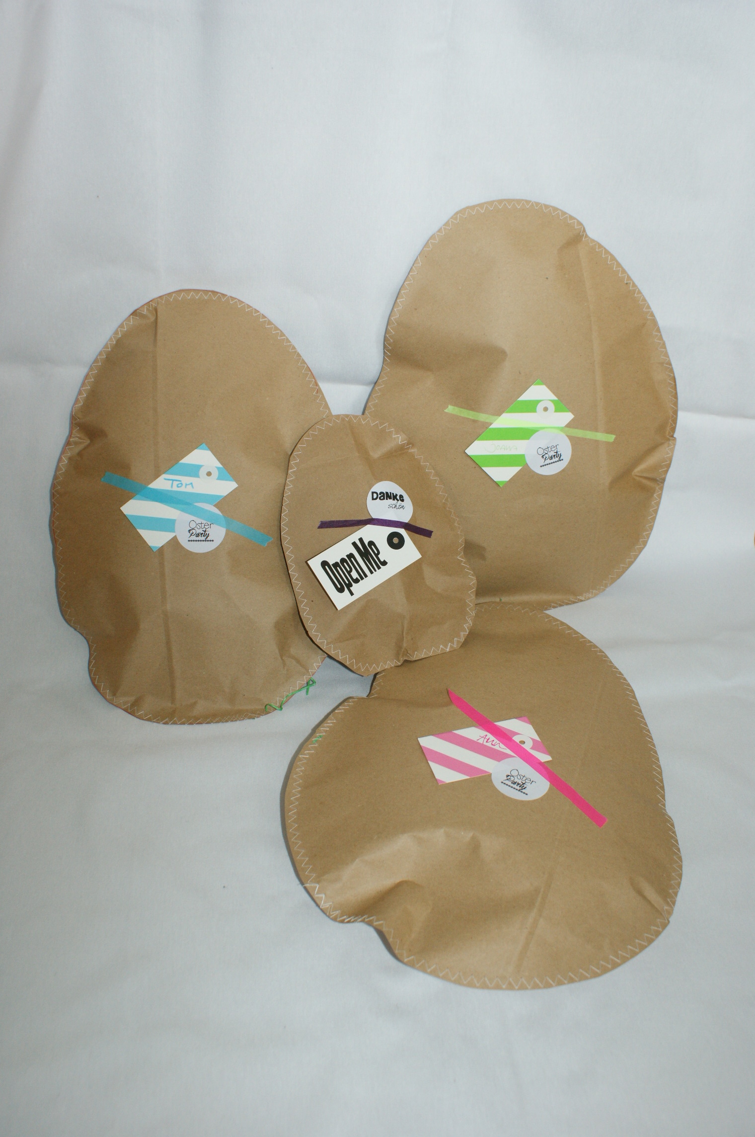 Evtl. Verzierungen anbringen. Wir haben ein Stück Jersey zum Band geschnitten und aufgenäht.