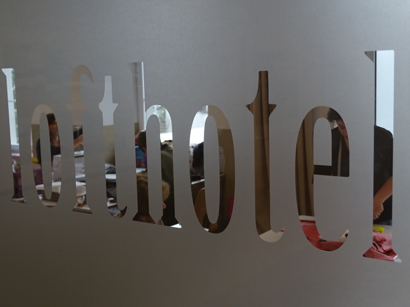 Bekannte und unbekannte Gesichter stellten sich vor und schon bald drang fröhliches Lachen durch die ehemaligen Industriehallen. Diese wurden kurz nach der Jahrhundertwende zu einem tollen Hotel im Loftstil umgebaut. Kisten wurden angeschleppt mit Unmengen von wunderschönen Stoffen. Jersey, Tricots, Baumwolle, Seide, Softshell, Walk und und und. Nähmaschinen und Ovis hereingetragen. Schnittmuster, Nähschatulen, Ideenbücher, Nadelkissen, Güfelibehälter in x-Varianten auf dem persönlichen Arbeitstisch platziert.
