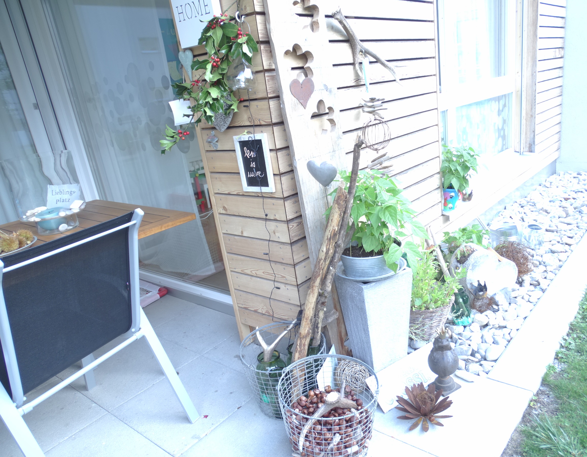 Der kleine Mann ist bei der Brio Eisenbahn gelandet und ich Stürme mit Farbe und Pinsel bewaffnet die Terrasse. Es geht der grauen Betonwand an den Kragen. Meine Mutter erfindet ihre praktische, grosszügige Wohnung immer wieder neu. Herrlich! Und ich lebe gerne meine Kreativität mit ihr aus. Eine neue Garderobe ist ebenfalls in der Pipeline!