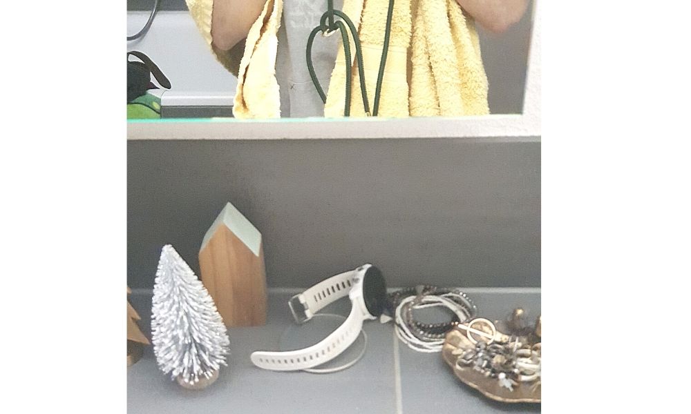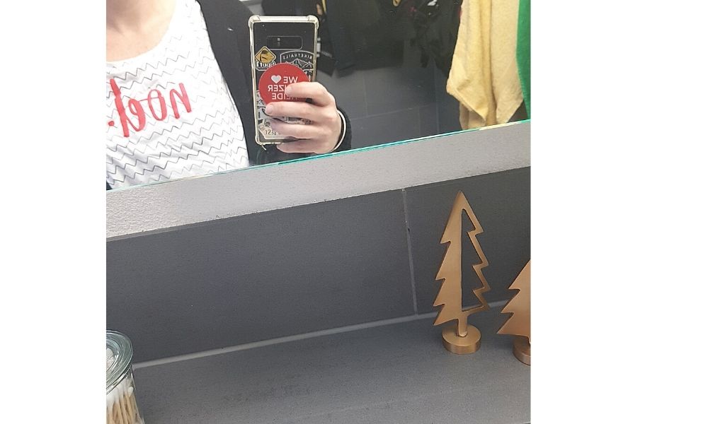 (Wenn ihr mit der Maus über die Bilder fährt, könnt ihr den Text dazu lesen.)- Badezimmer zum zweiten. Heute war es bereits 8 Uhr als wir aufgewacht sind. 12v12 im Dezember 2020
