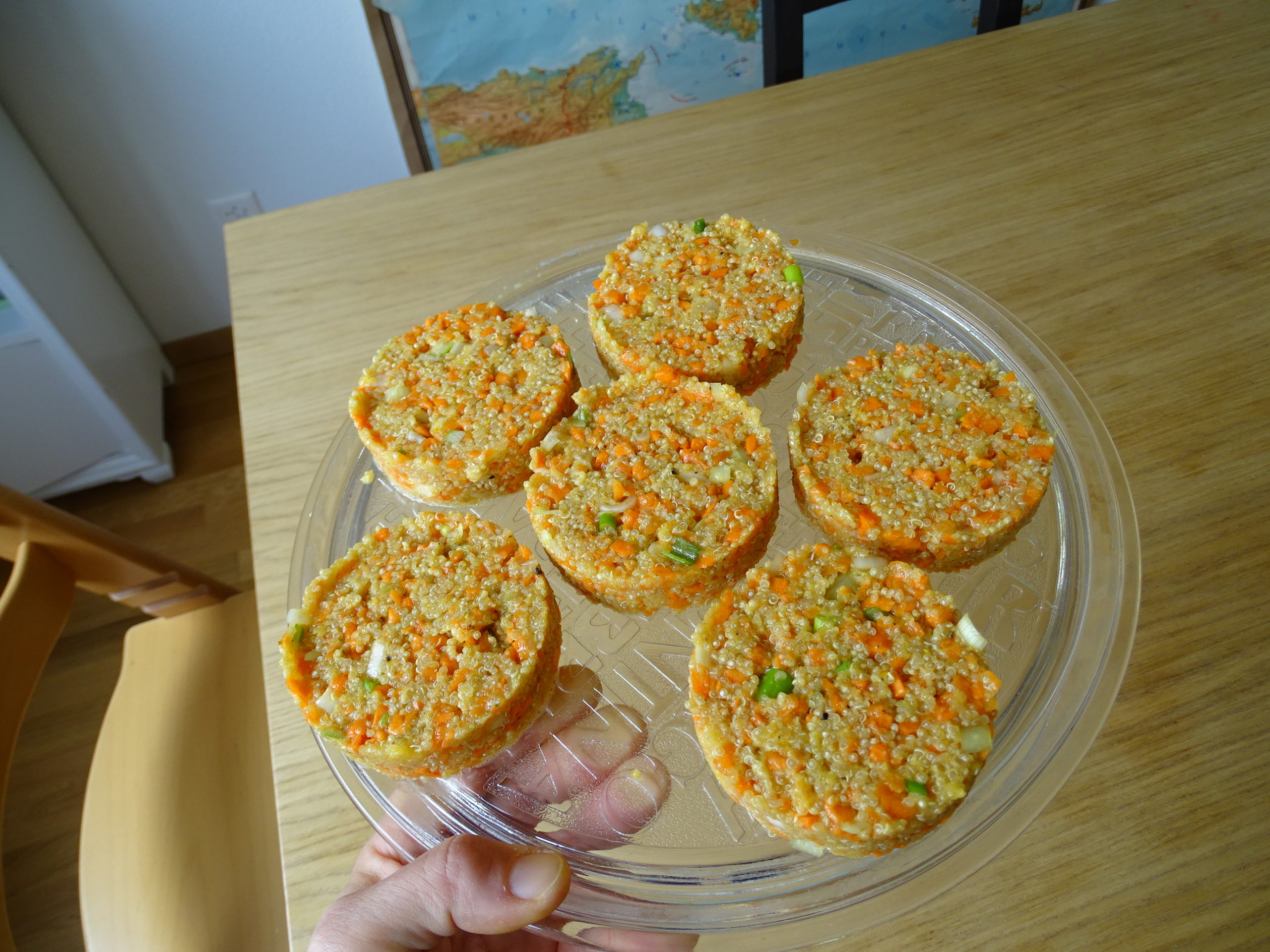 vermengen und mit dem Quinoa (dem abgekühlten) vermengen. Abschmecken. Wichtig ist, dass die Masse gut gewürzt ist.