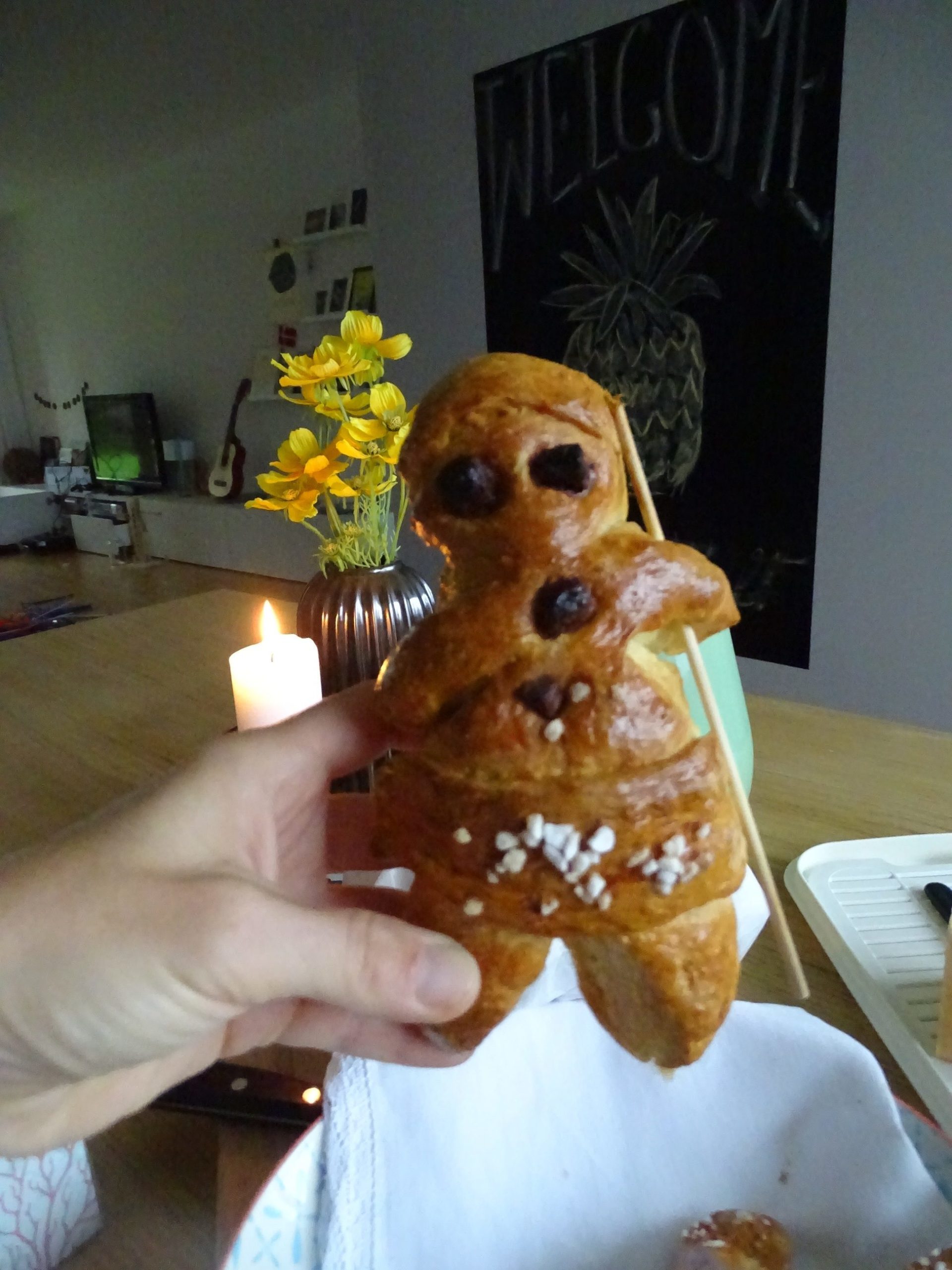 Ein Blick nach draussen sagt mir: heute wird ausgiebig gefrühstückt! Du siehst klar und richtig. Das ist ein Grittibänz. Was?! Ist denn schon der 6. Dezember. Nö, aber mein Mini fand gestern, es ist so kalt und trüb „lass uns Grittibänze backen“. Warum auch nicht. Fein waren Sie, die Zopfteigmännchen.