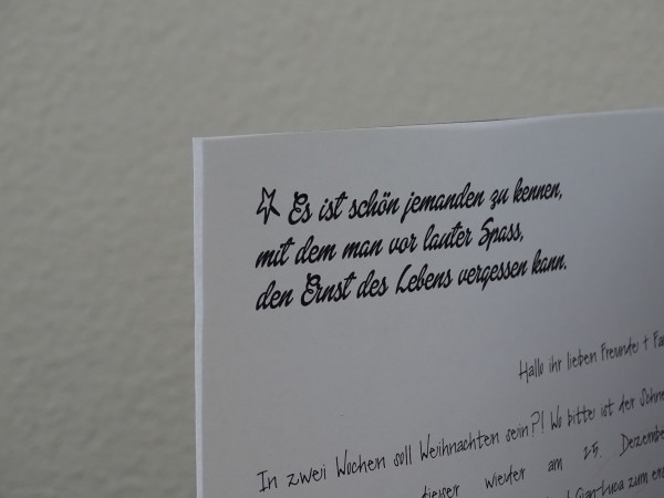 Meine Weihnachtsbriefe haben immer ein Zitat, Gedanke, Spruch dabei die zu uns passt.